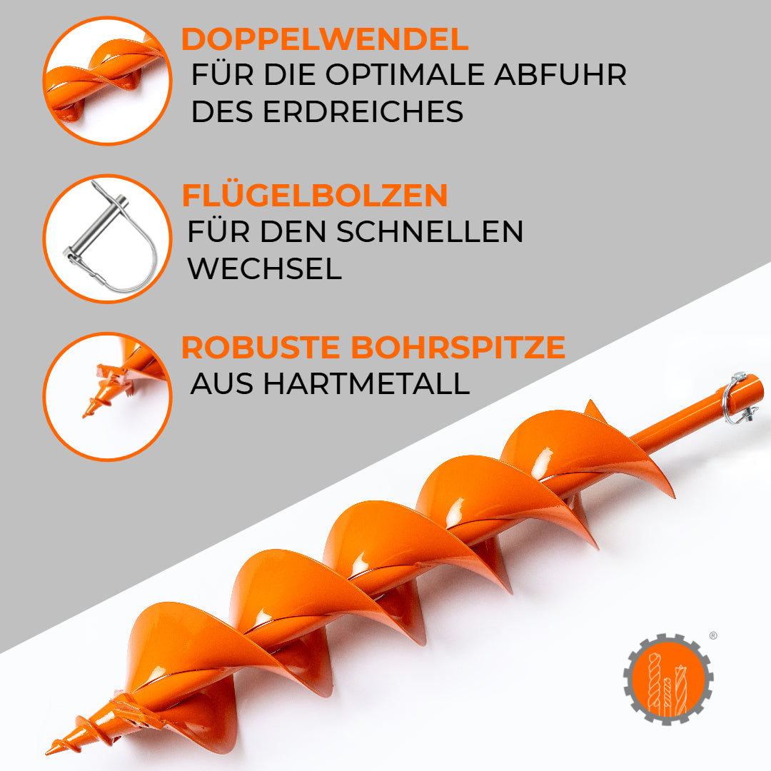 Erdbohrer mit Doppelwendel 40 - 300 mm Durchmesser / 800 mm Länge - ist auf Lager