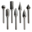 Wolframcarbid-Hartmetallfräser in verschiedenen Ausführungen. Hartmetallfräser aus Wolframcarbid sind hochleistungsfähige Schneidwerkzeuge, die aufgrund ihrer Härte und Verschleißfestigkeit in der Metallbearbeitung sowie in der Bearbeitung von harten Materialien wie Kunststoffen und Holz verwendet werden.